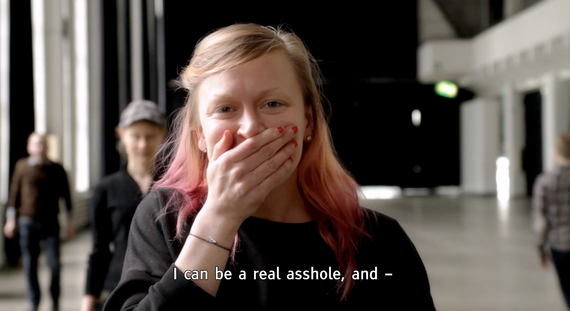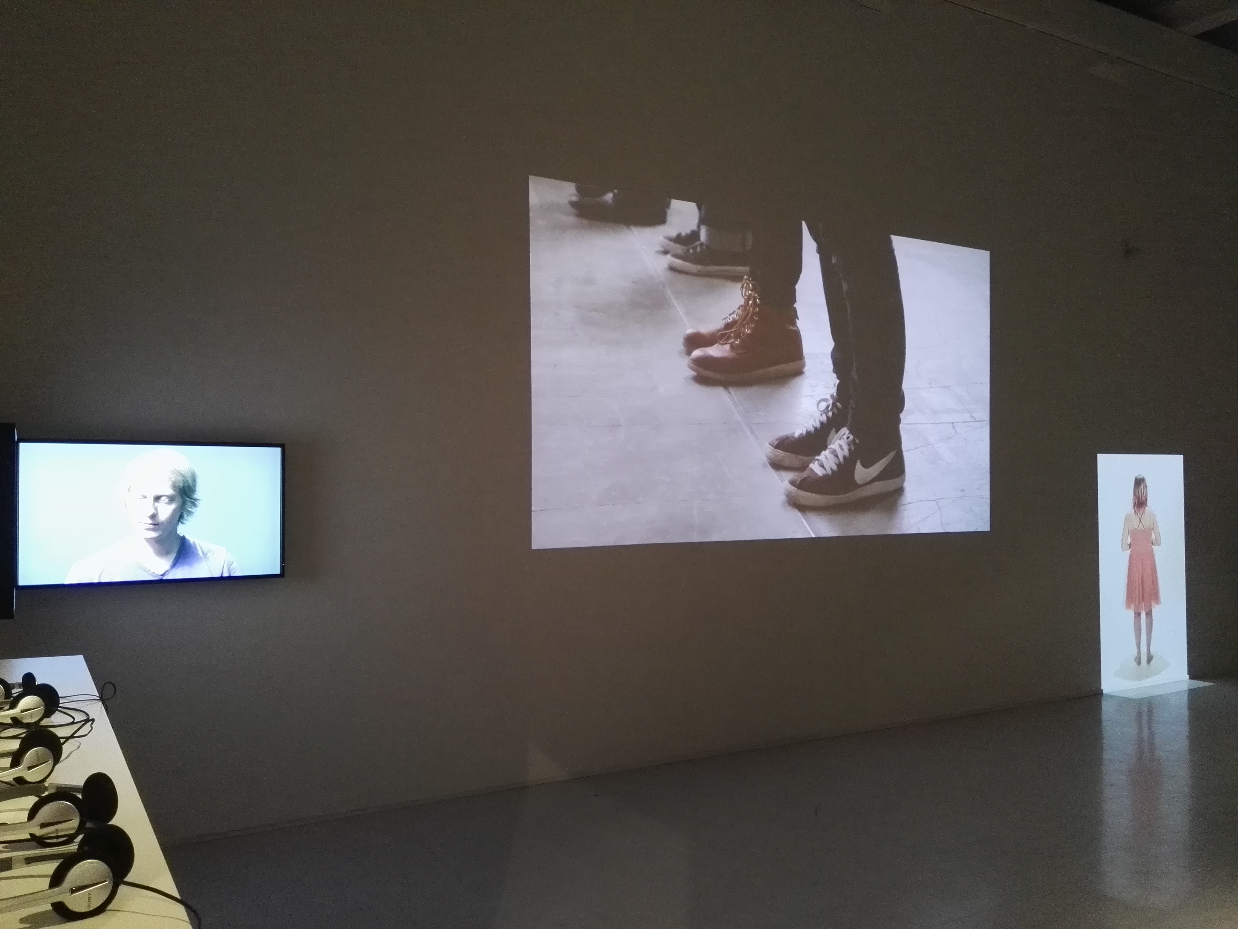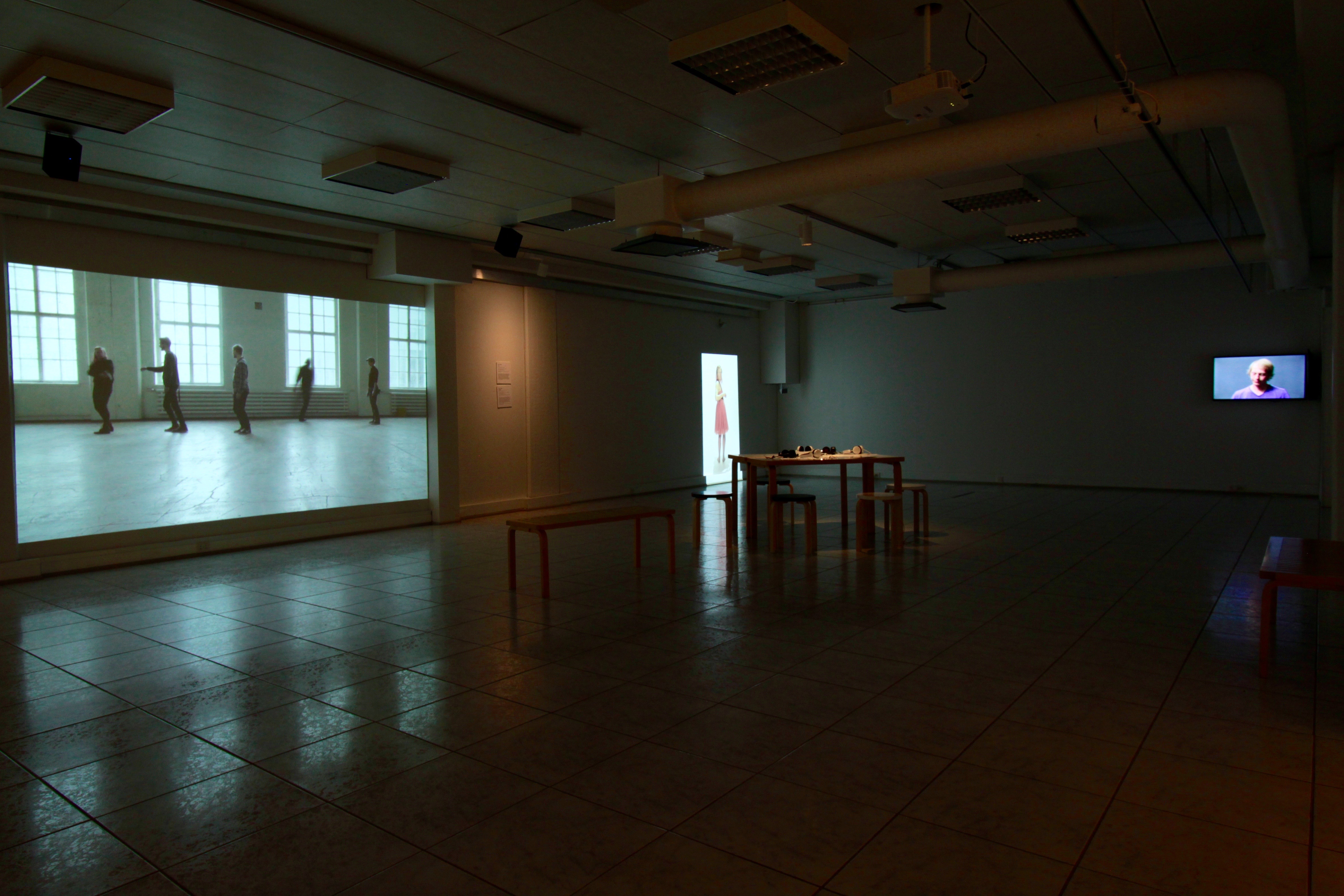 I began my studies by creating a multichannel work, Seksillä kotiin / What Is Left Unsaid (2014). This project explored communication between participants. It focused on how messages are transmitted and interpreted. This work involved two participants. They were filmed simultaneously from two perspectives. They repeated the same sentence with variation while responding to each other. The end result was nuanced communication from minimal elements.
